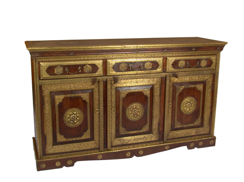 Made out of Sheesham timber and decorated from top to bottom in engraved brass, the Dahlia Sideboard bring a new vibe to your dining room décor. Made in India, it measures 36 inches (height) x 62 (width) x 17.75 (depth).