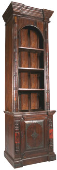 The Bombay Tall Narrow bookcase is a very impressive and unusual piece that can lend special interest to a room. Made in India, its dimensions are 96 inches high x 28 wide x 22 deep.